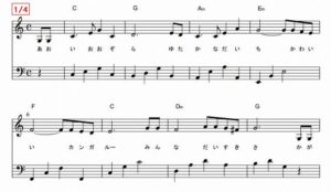 校歌mp3を追加して、楽譜は4枚のスライダーで追加しました。